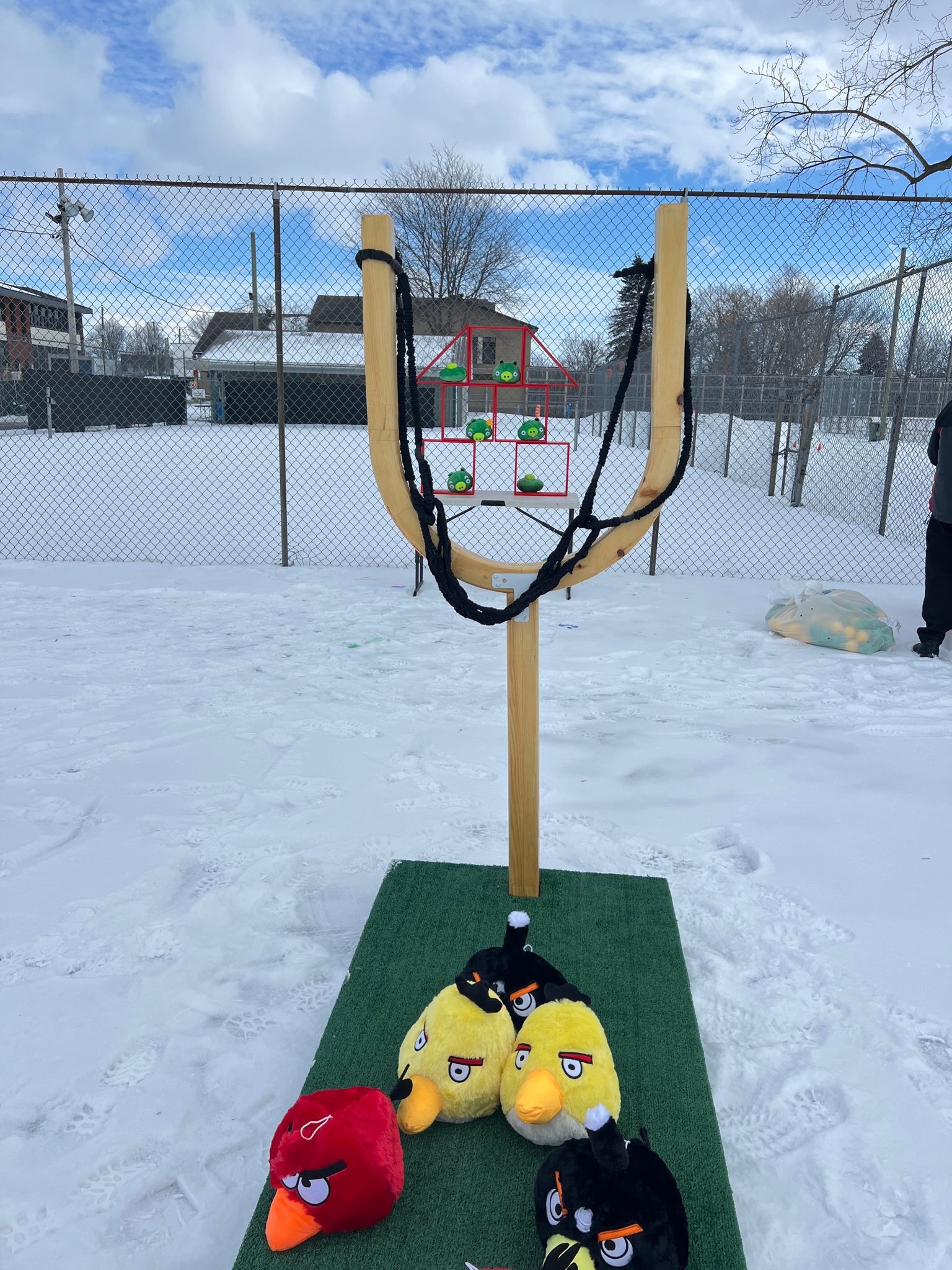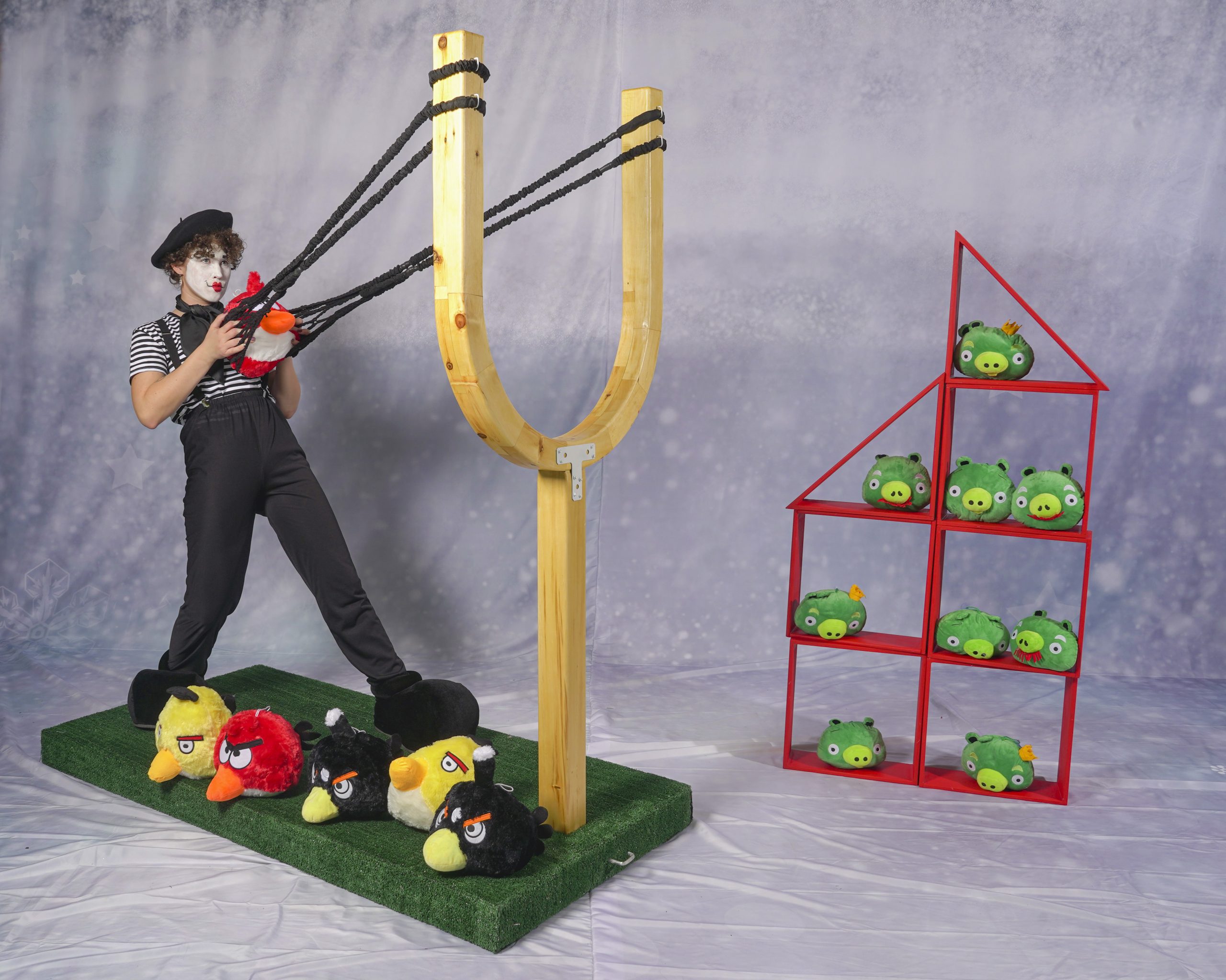 Angry Birds attraction is an analog of the popular mobile game, but now you can put the bird in a slingshot in the real world and launch it into the pigs’ houses.