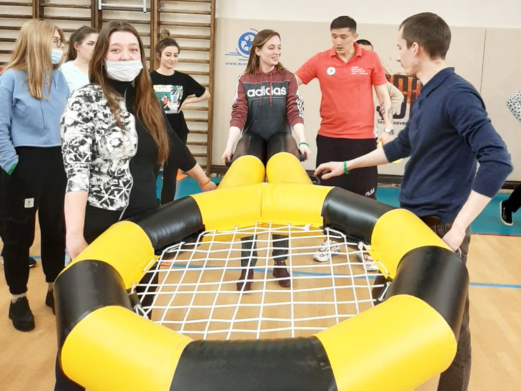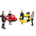 This exciting team game with inflatable Giant Rackets can be played by children and adults all year round. It consists of huge Rackets and a ball. 1 set of this game can be used immediately by 12 people.