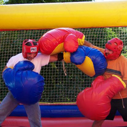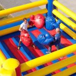 An inflatable boxing ring game is a fun and interactive activity that involves participants wearing oversized boxing gloves and competing against each other within an inflatable ring. The soft and bouncy nature of the inflatable ring adds an element of safety and excitement to the game. Players can engage in friendly boxing matches, trying to knock each other off balance or score points by landing punches on their opponent’s body. It’s a popular choice for parties, events, and team-building activities.