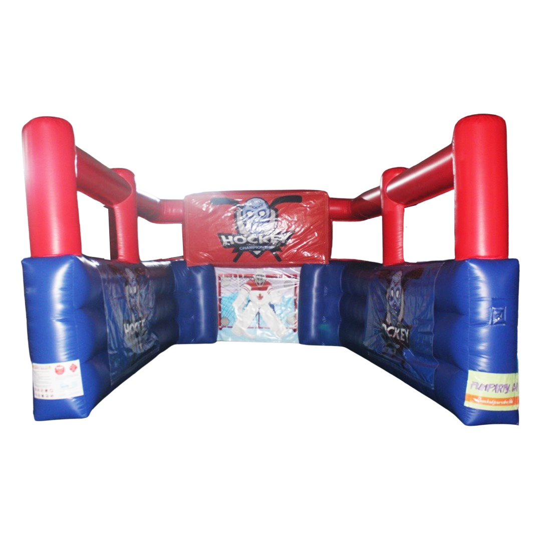 Shoot and score with this Hockey Game interactive inflatable! It is the perfect inflatable game for birthday parties, school fun fairs, corporate events, church and holiday events or youth sports team events. See if you can score stick side, glove side, five-hole or top shelf. Hockey sticks and balls are included with rental.