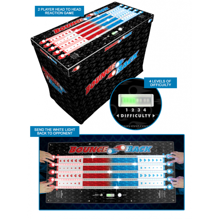 Your anticipation, precision, and speed are challenged in this head-to-head game. There are 5 rows for 5 times the fun, and 4 skill levels to make this a very unique and addicting game!