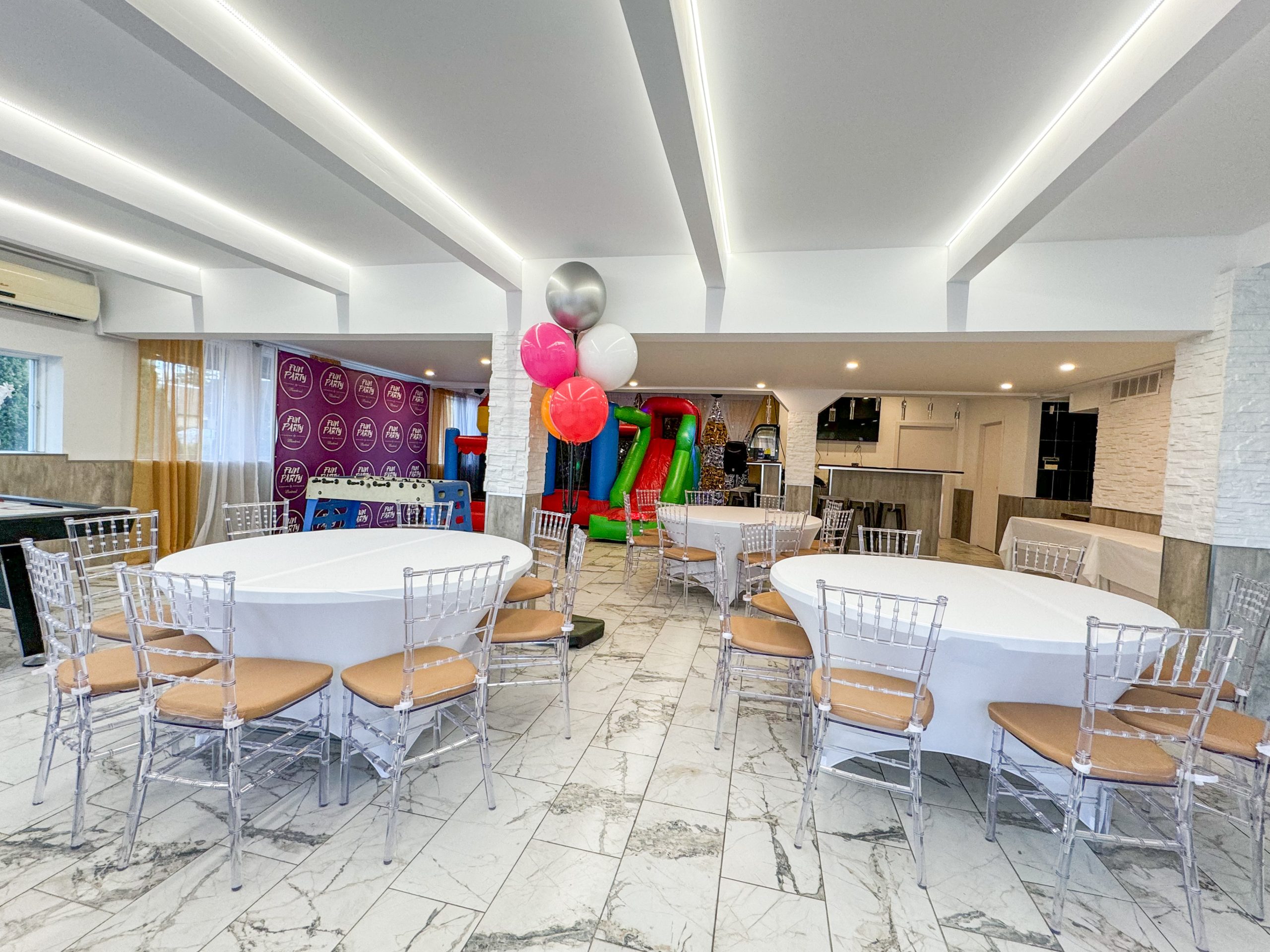 Funparty offers you a unique concept for celebrating kids birthday , baby shower or any other occasion. Private space only rented to you, your family and friends. The room is equipped with all your kids need to have fun for hours. Huge selection of rental items that you can add to your party, the equipment will be installed prior to your arrival.