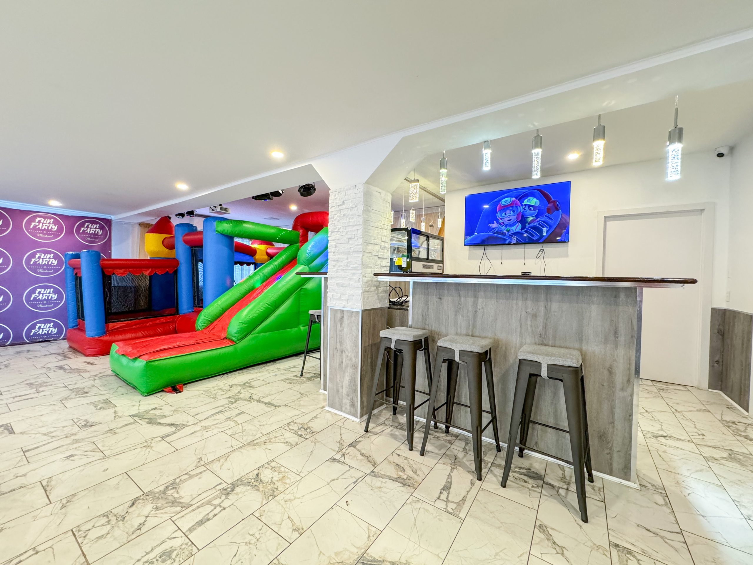 Party room capacity : 30 kids and 20 adults