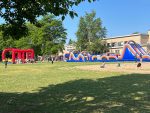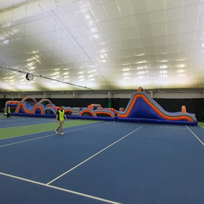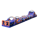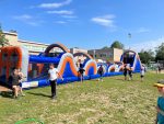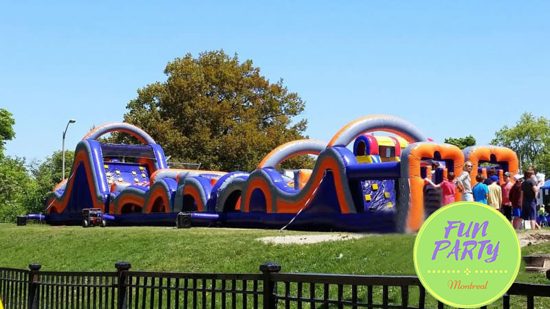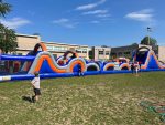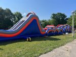 - This unit is made of three pieces, the obstacle course and 15′ slide. Parts can be rented and used separately.